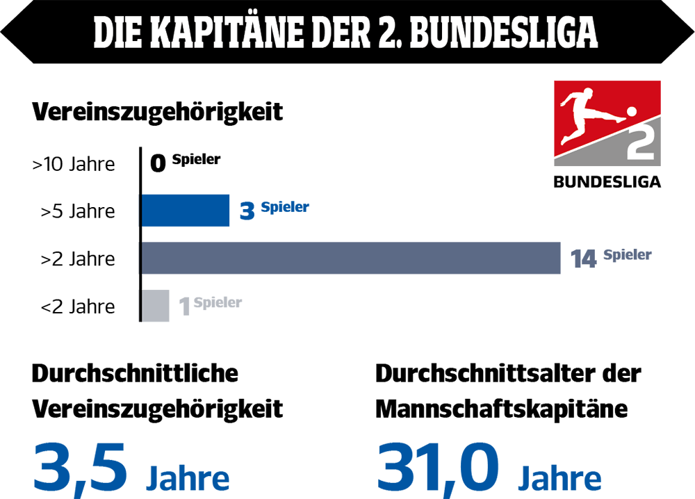 Natürlich kommt es auch mal vor, dass ein gänzlich neu zum Team gestoßener Spieler direkt die Binde übertragen bekommt, vorrangig bei solchen Vereinen, die – wie das Beispiel Borussia Mönchengladbach aktuell zeigt – einen erheblichen Umbruch initiiert haben. Gleiches galt übrigens auch für HSV-Kapitän Sebastian Schonlau, der direkt nach seiner Verpflichtung im Sommer 2021 vom zu diesem Zeitpunkt ebenfalls neuen Trainer Tim Walter zum Mannschaftsführer ernannt wurde. Allerdings: Schonlau trug bereits zuvor beim SC Paderborn die Binde, er stieß also mit nachgewiesener Führungserfahrung zu den Rothosen und war daher und aufgrund seines Naturells für Walter sofort die erste Wahl. Mit nunmehr zweieinhalb Jahren Vereinszugehörigkeit liegt „Bascho“ knapp unter dem Mittelwert der 2. Liga, in der Sascha Mockenhaupt vom SV Wehen Wiesbaden die Tabelle der Vereinszugehörigkeit anführt. Und das, obwohl er – und auch dies trifft auf mehrere Clubs in 1. und 2. Liga zu – nicht immer zur Startelf seines Clubs zählt. Auch dies ist ein interessanter Aspekt, denn selbstverständlich wählen Trainer ihren Kapitän natürlich auch nach sportlichen Gesichtspunkten aus, aber augenscheinlich nicht nur. Auch Attribute wie besagte Identifikation und Vereinszugehörigkeit sowie Führungsqualitäten auf und neben dem Platz spielen eine entscheidende Rolle, gerade auch in der heutigen Zeit, in der viel Wert auf Kaderbreite und damit auf Rotation oder auch bis zu fünffachen Auswechslungen während eines Spiels gesetzt wird. Den klassischen unumstrittenen Stammspieler gibt es natürlich weiterhin, offensichtlich zählen aber bei der Wahl des Mannschaftsführers, der seinem Titel entsprechend eine Mannschaft führen und damit quasi eine leitende Position ausfüllen soll, heutzutage auch noch viele weitere Faktoren, die über die reine Anzahl an Startelfeinsätzen hinausgehen.