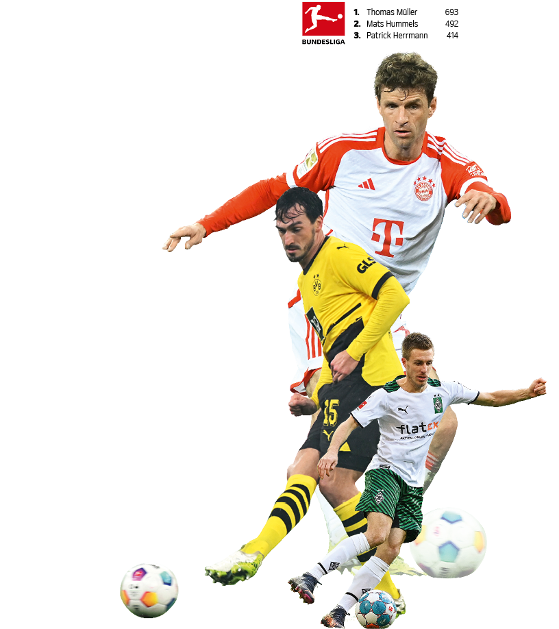 Auf Platz 2 dieser „Treueliste“ folgt mit Mats Hummels (35) ein weiteres Eigengewächs des FC Bayern. Seine mehr als 490 Pflichtspiele für einen Club hat der Innenverteidiger allerdings für Borussia Dortmund absolviert. Ironischerweise mit einer Unterbrechung von 2016 bis 2019 beim – na klar – FC Bayern München. 72 Pflichtspiele gingen dabei ebenso wie die makellose schwarz-gelbe Weste drauf. Den dritten Platz auf dem Treppchen besteigt mit Mönchengladbachs Patrick Herrmann (33) dann wiederum ein Fohlen durch und durch: Seit seinen Jugendtagen und nunmehr fast 16 Jahren lang trägt der Flügelspieler die Raute der Borussia auf der Brust und ist damit ebenso wie die beiden zuvor genannten Weltmeister sowie VfL-Eigengewächs Maximilian Arnold (29) einer von vier aktiven Bundesliga-Spielern, die mehr als 400 Pflichtspiele für ihren Club absolviert haben. Auch die Durchschnittswerte der aktiven Rekordspieler im Oberhaus des deutschen Fußballs lassen sich durchaus sehen: Im Schnitt weisen die „Club-Dauerbrenner“ der 18 Bundesliga-Vereine mehr als 333 Pflichtspiele vor, Respekt!