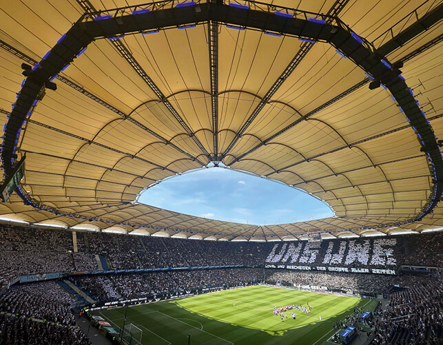 Viele Verschönerungen der Fankurven und -tribünen hat das Volksparkstadion in seiner langen und bewegten Geschichte erfahren. Eine Zeitreise durch die Anfänge und die Highlights der kreativen CHOREOGRAFIEN der HSV-Fans in ihrem Wohnzimmer Volksparkstadion.